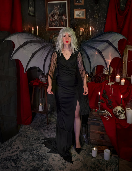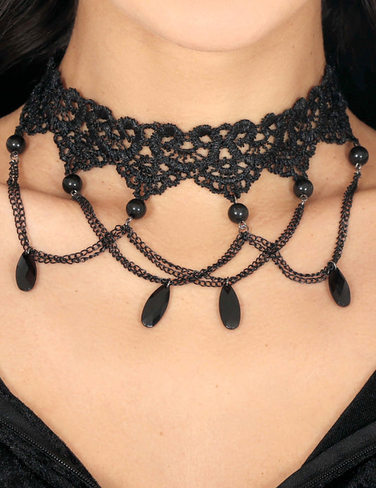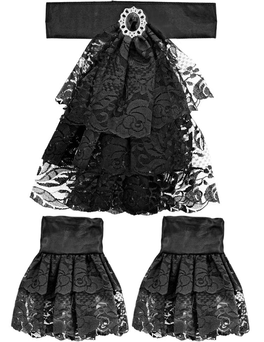 ElfogyottFelnőtt fekete csipke jabot és mandzsetta