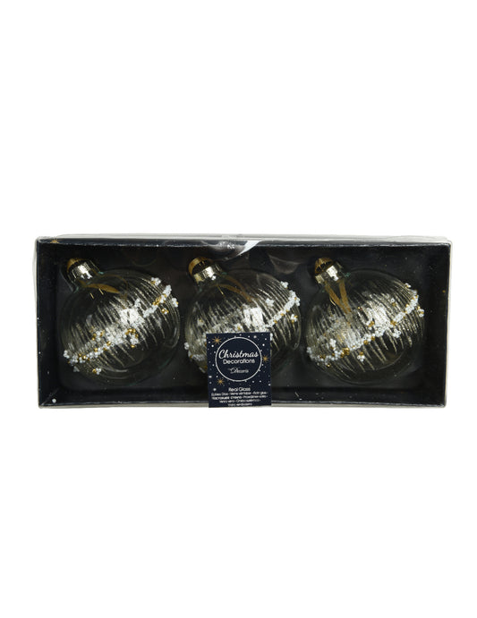 Elfogyott3 átlátszó üveg karácsonyi gömb arany csillámmal 8 cm