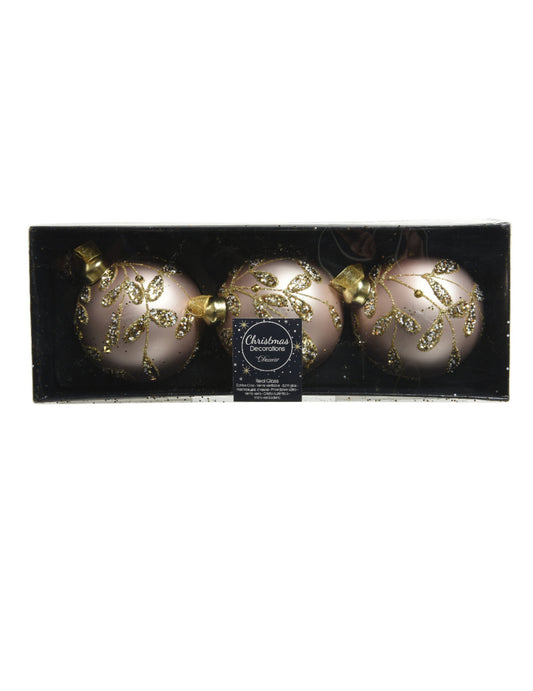 Akció3 rózsaszín púder üveg karácsonyi gömb arany leveles mintával 8 cm