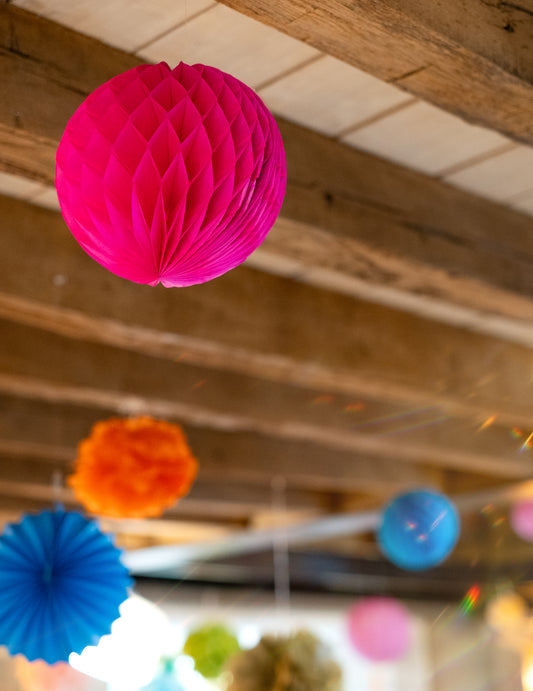 3 rózsaszín rózsaszín fukszia 15, 20 és 25 cm méhsejt papírgolyók
