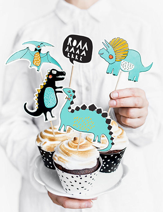 5 Cake Toppers kék dinoszauruszokban 10,5 cm - 20 cm