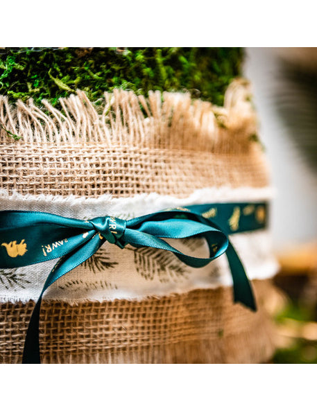 ElfogyottVászon szalag trópusi zöld és elefántcsont levelek 4,5 cm x 3 m