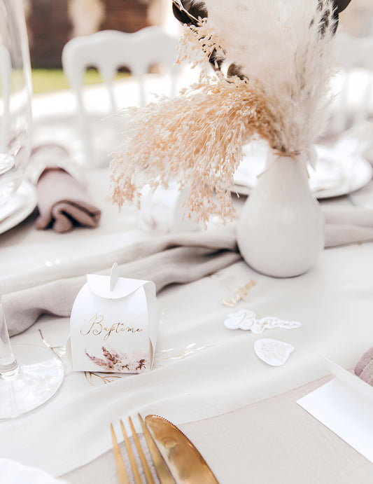 Elfogyott10 karton keresztelői doboz pampafűvel és gyapotvirágokkal (5x7 cm) cm