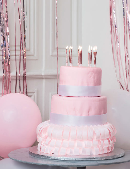 10 db óriási rozéarany születésnapi gyertya 15 cm fémes hatású