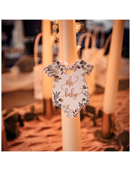 10 db Oh Baby növényi alapú és arany testcímke (5 x 6 cm) cm szalaggal