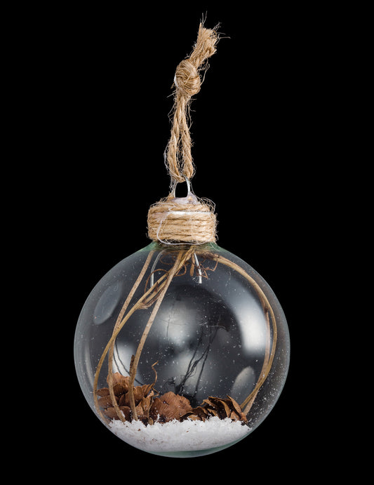 Természetes karácsonyi golyó hóval és fa 8 cm véletlenszerű modell