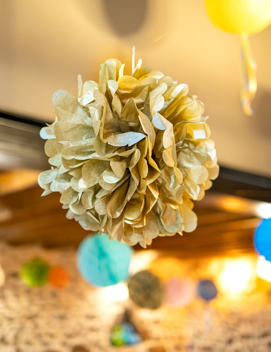 Bouquet de 8 ballons noir, or et argent 27 cm avec confettis