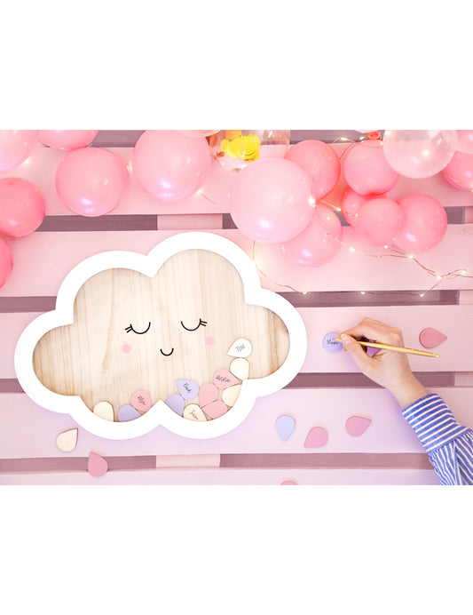 Fából készült vendégkönyv felhő formájában, 43 x 30 cm 30 cseppel