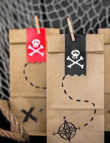 6 Kraft papír ajándéktáskák 8 x 18 x 6 cm kalóz ünneplés