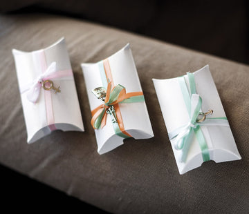 10 fehér kartondoboz szalaggal, 5,2 x 5,2 cm esküvőre