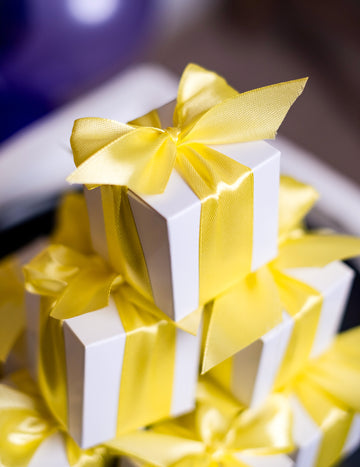 10 fehér doboz arany szatén szalaggal, 10 x 7,5 cm cm cukrozott mandulához