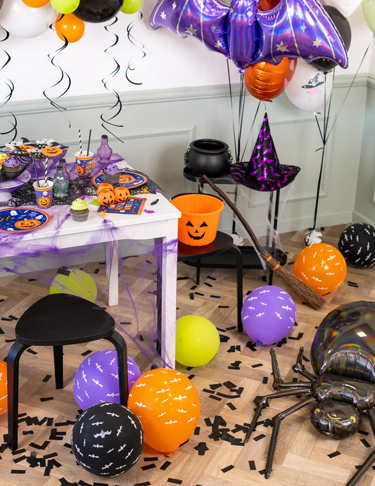 - Halloween : Teremts félelmetes hangulatot fekete és narancssárga léggömbökkel.