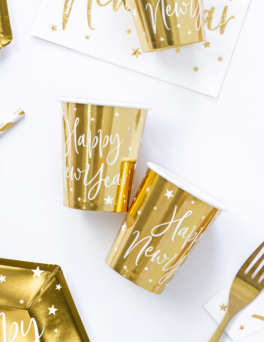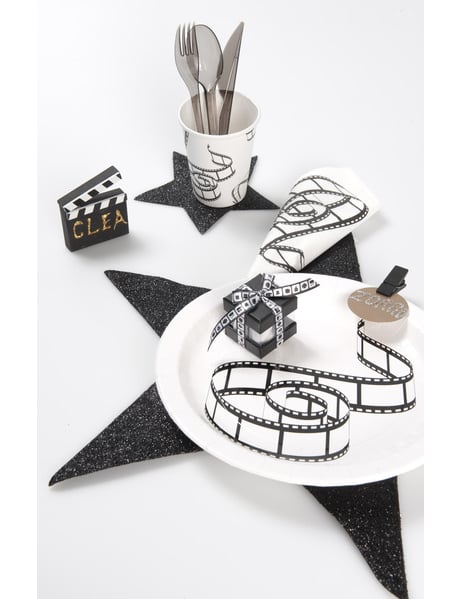 8 gobelets en carton noirs et dorés festonnés 200 ml élégants