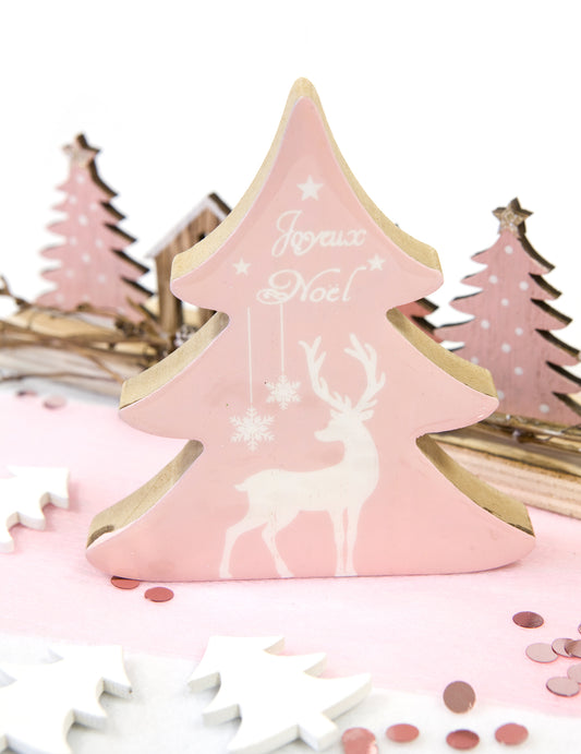 Fa dekorációs fa és rénkoló rózsaszín zománcozott megjelenés 10 x 11 cm