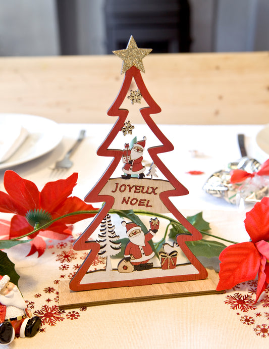 Fa dekoráció piros fenyő boldog karácsonyt 23 x 15 x 4 cm