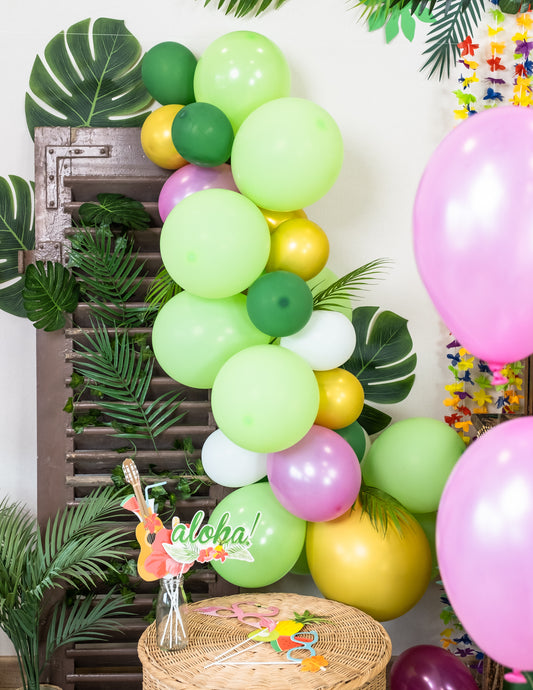 Tartalmazza: 30 25 cm -es léggömb, 38 13 cm -es léggömb, 2 30 cm -es léggömb, 4 trópusi lap, 1 ragasztó matricák szalagja, 1 5 m rögzítőszalag