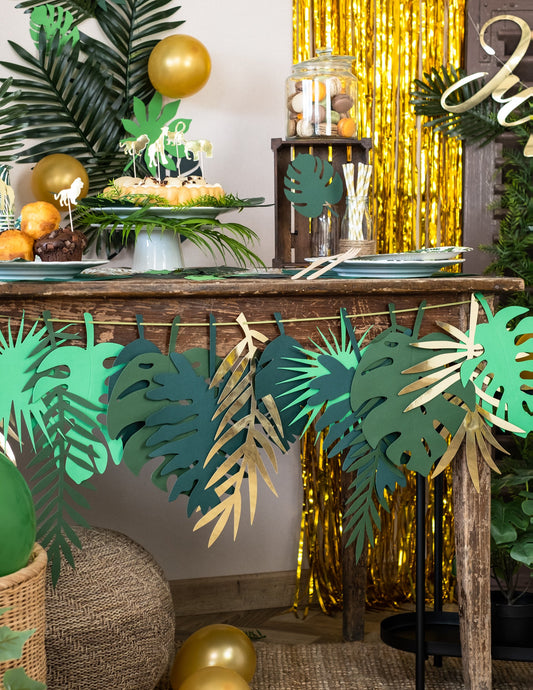 Karton koszorú arany trópusi levelek és a zöldből 2 m -re lebontva