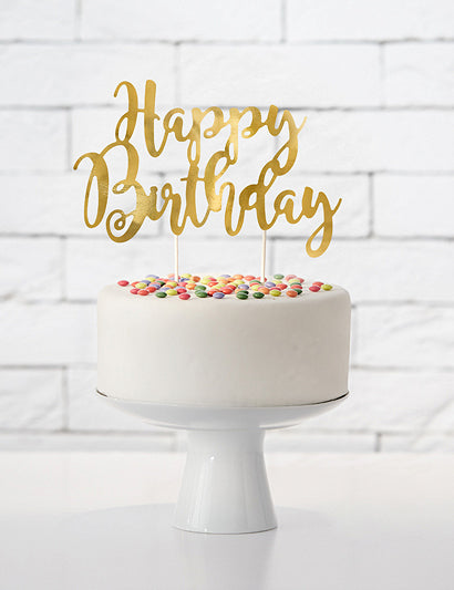 Cake Topper a boldog születésnapot arany metál 22,5 cm -ben
