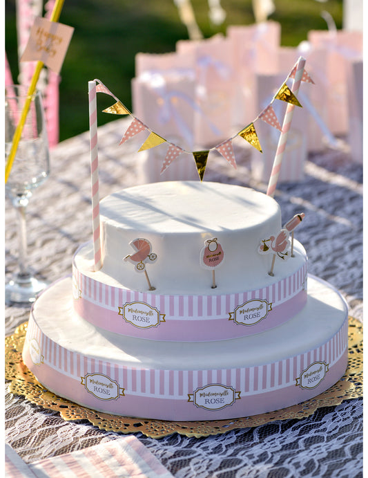 Elfogyott6 db rózsaszín babaváró torta dekoráció, komplett készlet