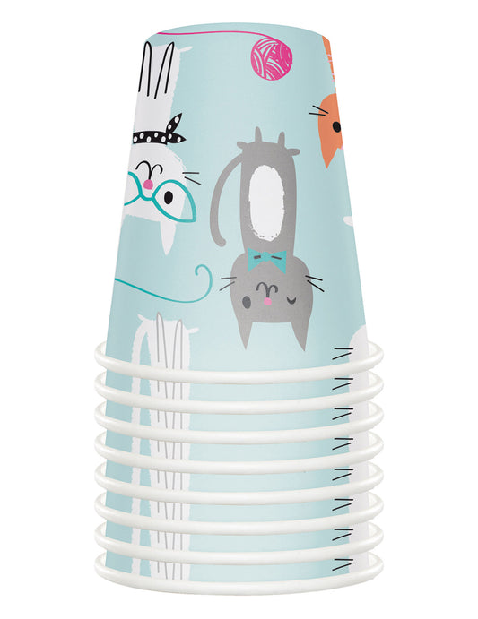 Elfogyott8 db kék macskás kartonpohár, 266 ml, születésnapi dekoráció
