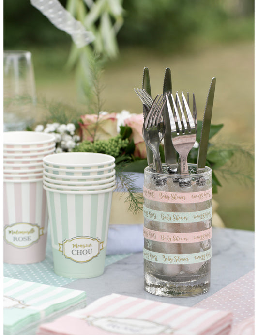 Elfogyott24 db rugalmas, halványrózsaszín csíkos karton szívószál 19,7 cm