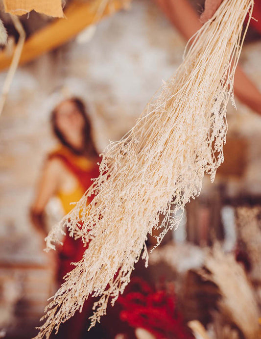 - Rusztikus és bohém : Fából, jutából, makraméból és természetes lombozatból készült dekorációk.