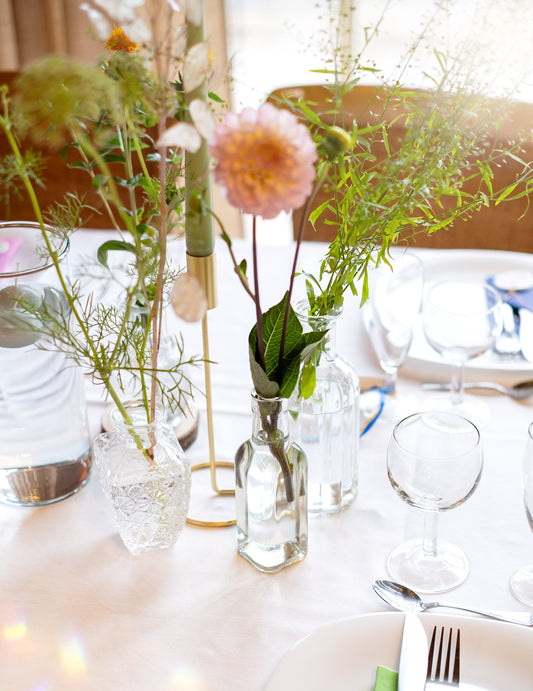 - Elegáns központi díszek vázákkal, művirágokkal vagy lebegő gyertyákkal.