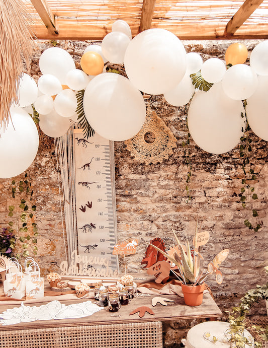 Tartalmazza: 5 db 45-ös lufi cm, 30 db 25 darabos lufi cm , 20 db 12 darabos lufi cm , 4 szörnyeteg levél , 3 pálmalevél , 1 borostyánfüzér , 1 fehér szalag , 1 műanyag szalag az ívhez , 20 ragasztópötty
