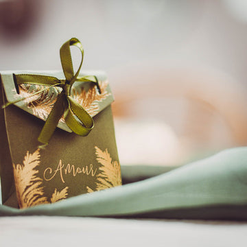 Elfogyott10 khaki színű pampa kartondoboz aranyfólia szegéllyel, "Love Wedding" mintával és szalaggal