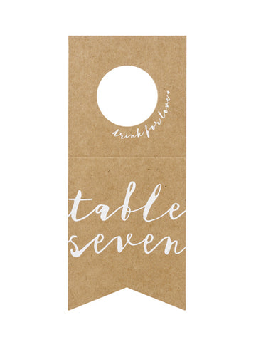 Elfogyott10 db kraftpapír asztali jelölő üvegekhez, fehér számokkal