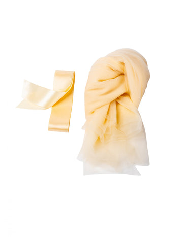 Elfogyott2 elefántcsont színű székfátyol és szatén szalagok, 2,6 x 1,6 m, elegáns esküvői ruha