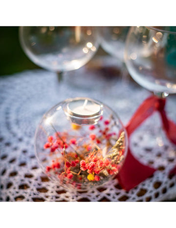 ElfogyottÁtlátszó gyertyatartó színes szárított virágokkal, 11 x 10,5 cm cm vidéki esküvő
