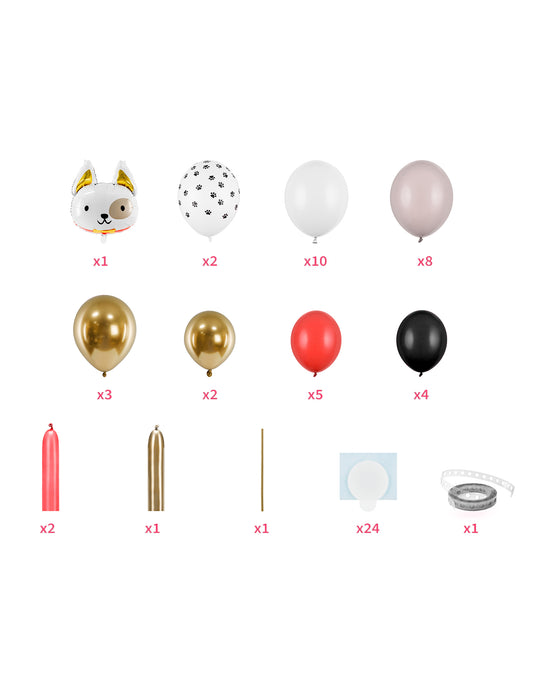 Tartalmazza: 34 lufi, 1 kutyafej lufi , 4 db modellező lufi , 1 szalmaszál , 24 ragasztó , 1 lufi girland