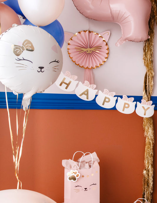 ElfogyottBoldog születésnapot cicák girland 2,8 m rózsaszín masnikkal