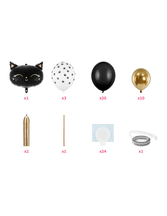 Tartalmazza: 33 lufi, 1 fekete macska lufi , 2 db modellező lufi , 1 szalmaszál , 24 ragasztó , 1 lufi girland szalag