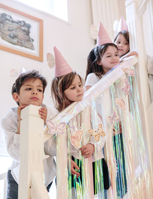 ElfogyottPasztellrózsaszín papír pillangó girland 10 cm x 1,5 m varázslatos hangulat