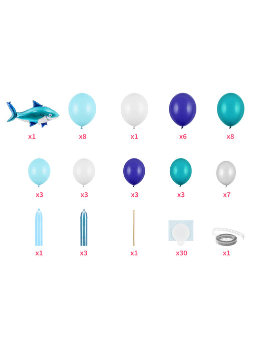 ElfogyottCápaparti lufiív készlet, 78 darabos, cápa témájú