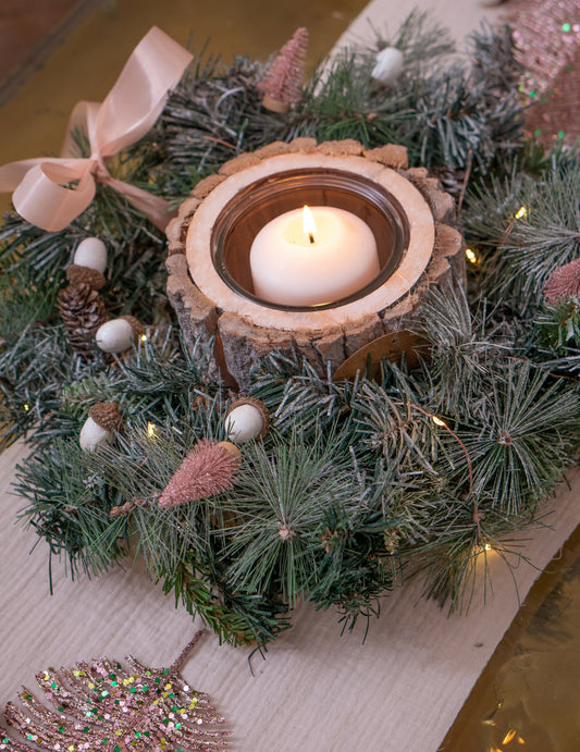 Rózsaszín asztali központ és rózsaszín lombozat 18 cm