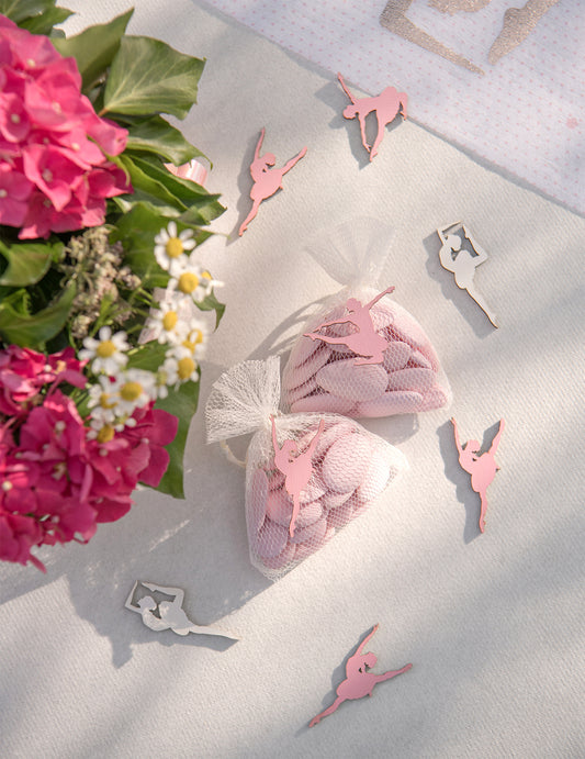 10 db balerina fa asztali konfetti 1 x 2 cm rózsaszín és fehér