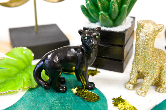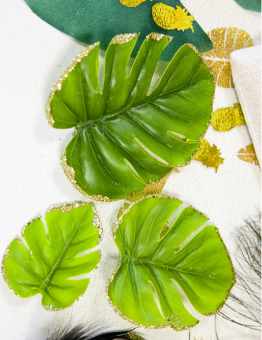 6 db trópusi levél csillogó szélekkel, 10 x 8 cm zöld és arany