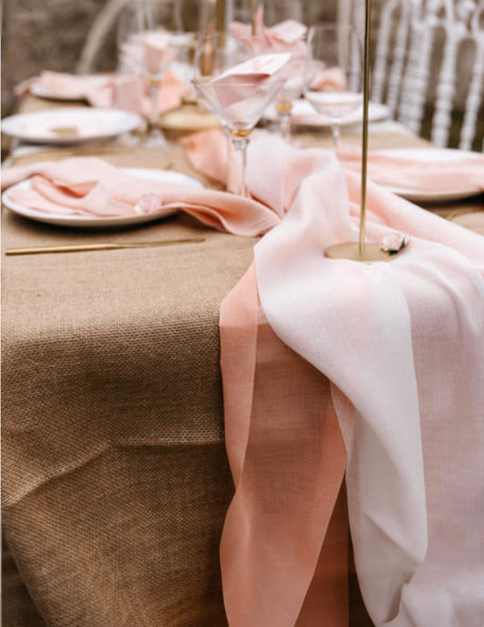 Rózsaszín muszlin asztali futó 14 cm 5 méteres esküvői dekoráció