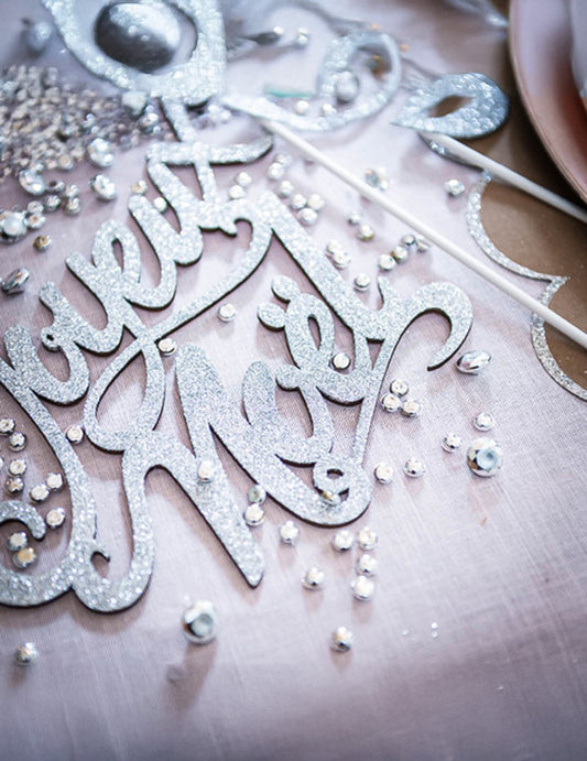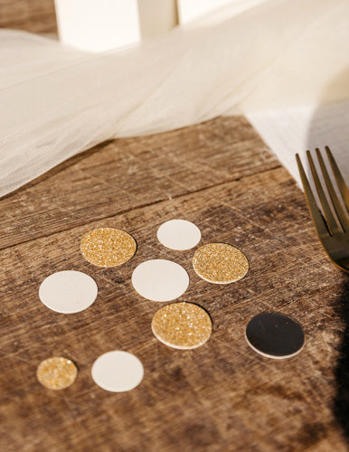Elefántcsont színű asztali konfetti és arany csillámpor az elegáns dekorációhoz