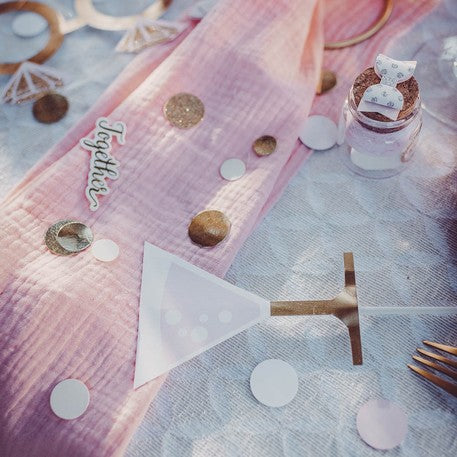 Rózsaszín, fehér és metál arany csillámos asztali konfetti, 14g, partikra