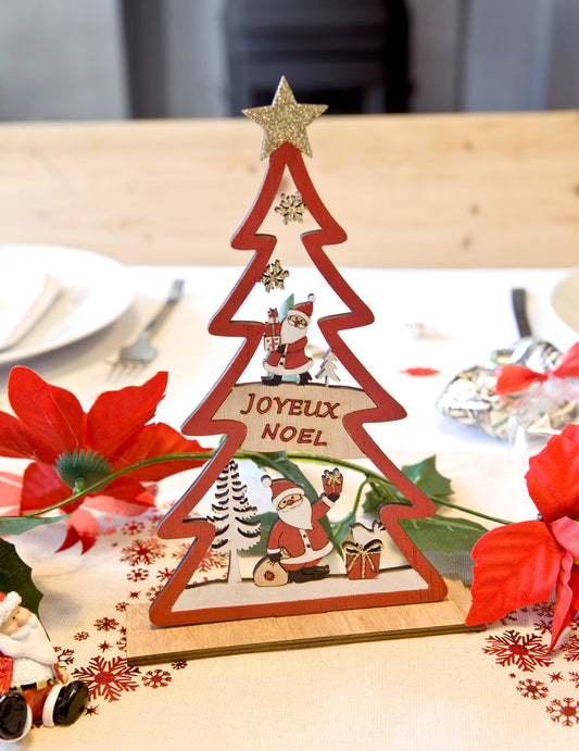 Fa dekoráció piros fenyő boldog karácsonyt 23 x 15 x 4 cm