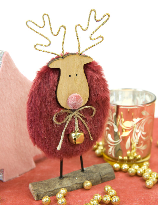 Rénszarvas fa felfüggesztés szőrme 11 cm véletlenszerű színű