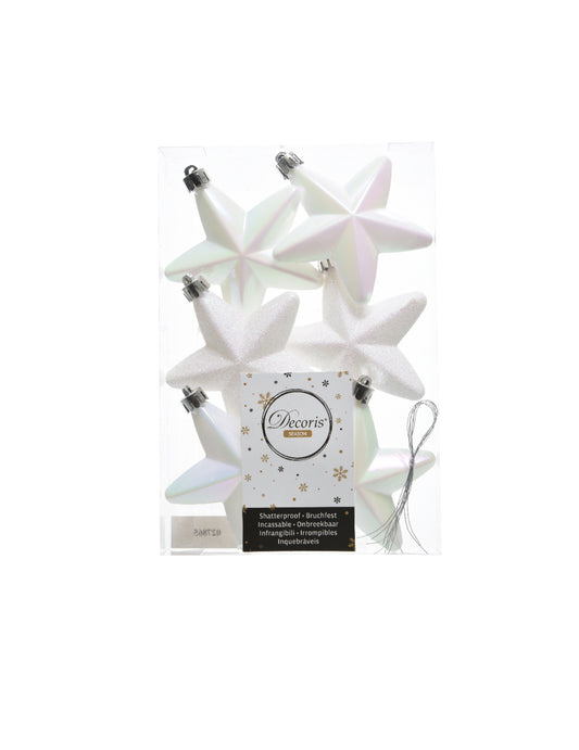 6 db fehér csillagos karácsonyfadísz 7.5 cm csillogó és irizáló