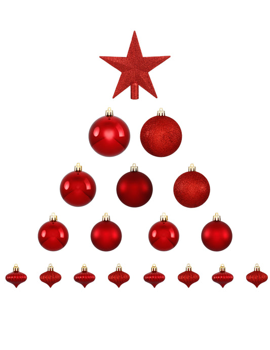 18 darabos piros karácsonyfadísz készlet, fényes és matt