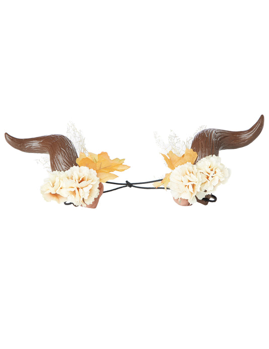 Barna elvarázsolt szarvak, amelyeket virágok vesznek körül