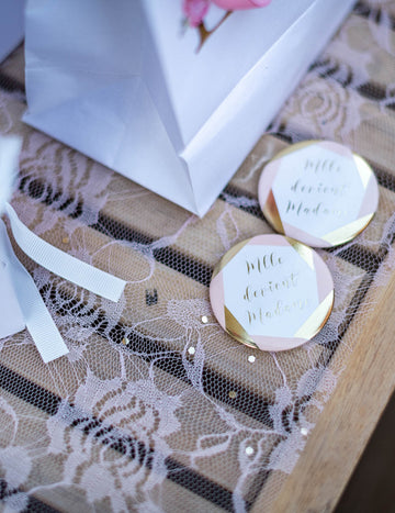 Akció8 jelvény a hiányzó Madame rózsaszín és arany EVJF 5 cm