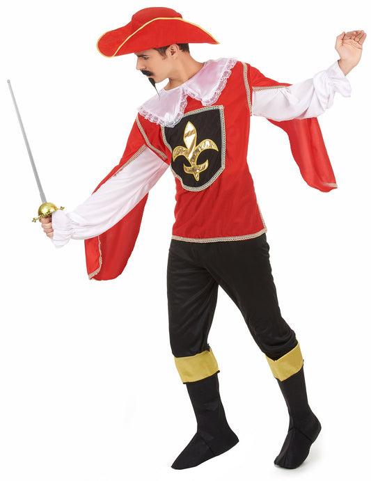 Piros és fekete férfi muskétás jelmez